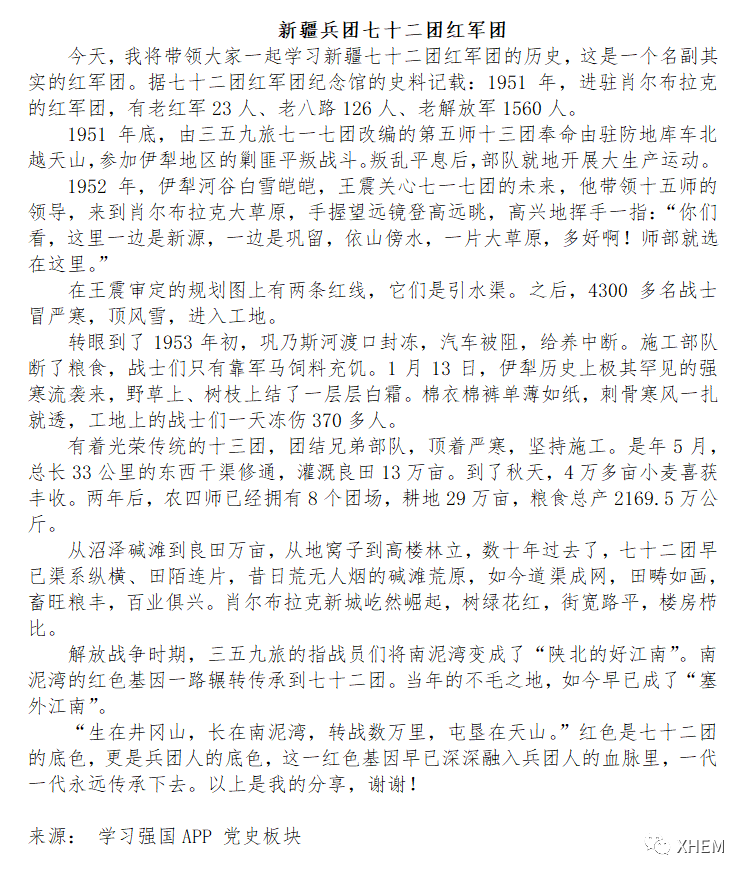 下面由李博同志带您走进“新疆兵团七十二团红军团”的故事,