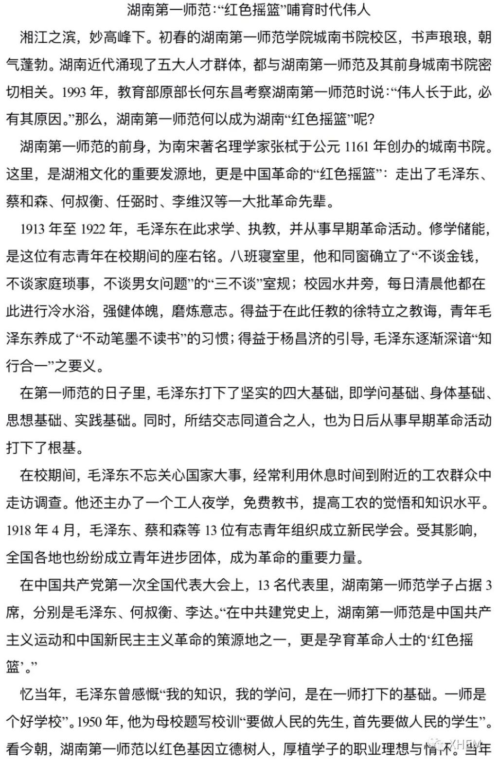 听听“湖南第一师范:“红色摇篮”哺育时代伟人”的故事